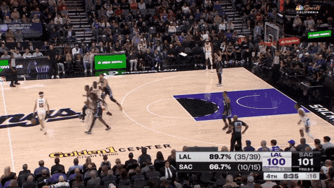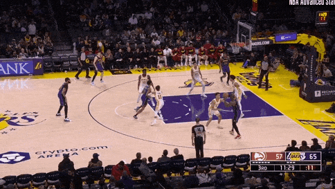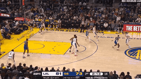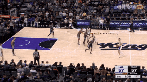 里夫斯借掩护,一个左手推球加速,蒙克被远远甩开,里夫斯面对护框球员再次用高难度的单手托球高打板终结。