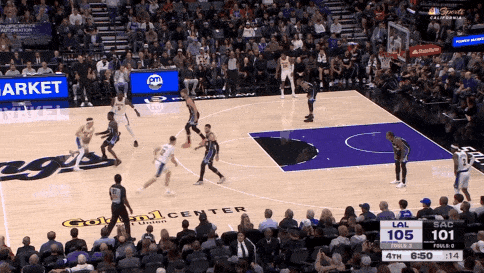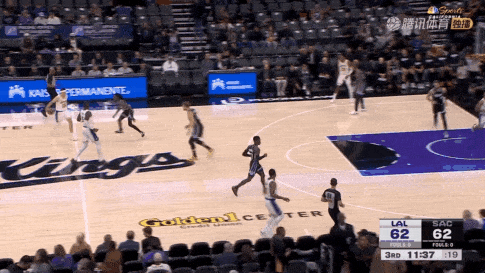 更明显能感觉到里夫斯速度提升的回合——弧顶单挑施罗德,非常精准的把握住了施罗德双脚上步的时机,挖步蹬地瞬间从正面摆脱,面对小萨的护框直接挑战上篮命中。